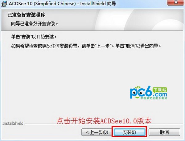 点击“安装”开始安装ACDSee10.0版 如图七。